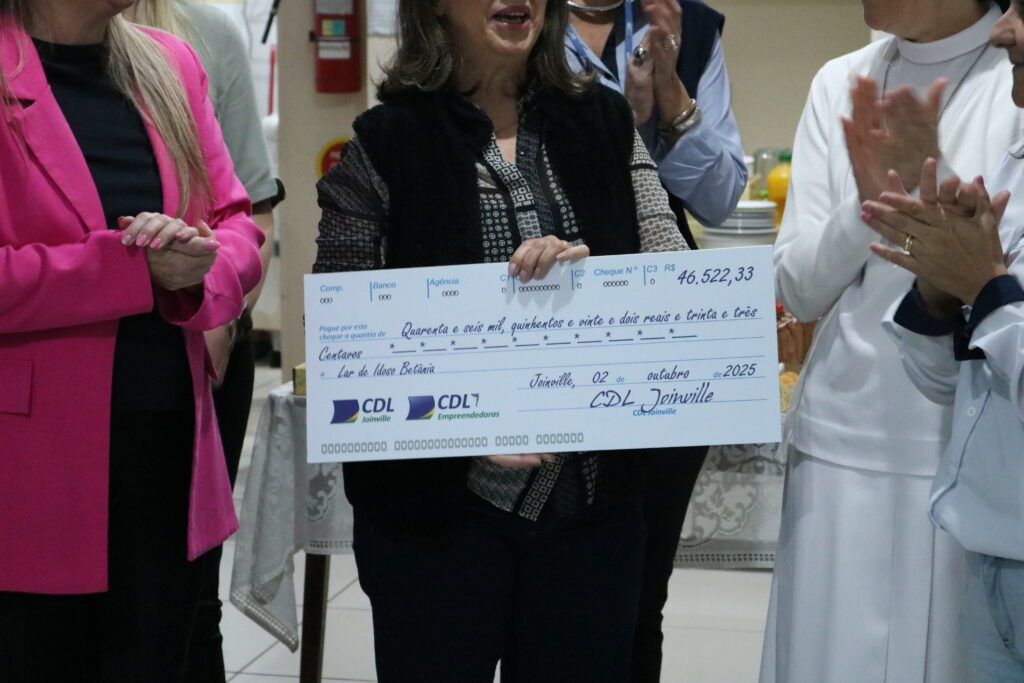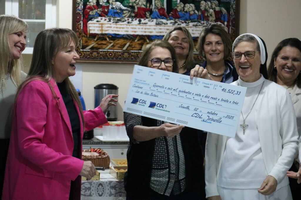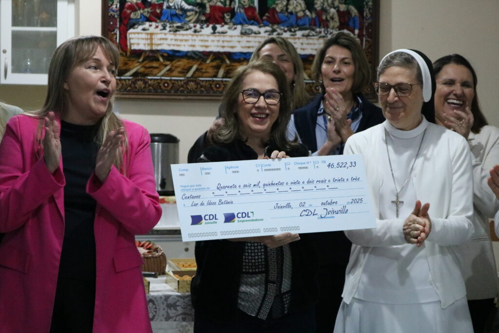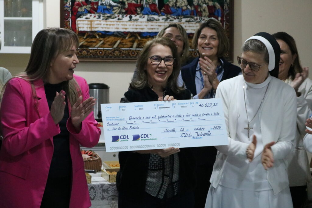 A Associação de Inclusão e Promoção Social da Arquidiocese de Joinville- Adipros celebra com gratidão mais um gesto de generosidade que fortalece nossa missão. No dia 2 de outubro, o Lar de Idosos Betânia recebeu um cheque simbólico no valor de R$ 46.522,33, fruto da arrecadação da 14ª edição do Café Beneficente, promovido pela Câmara Setorial de Empreendedoras da CDL Joinville.